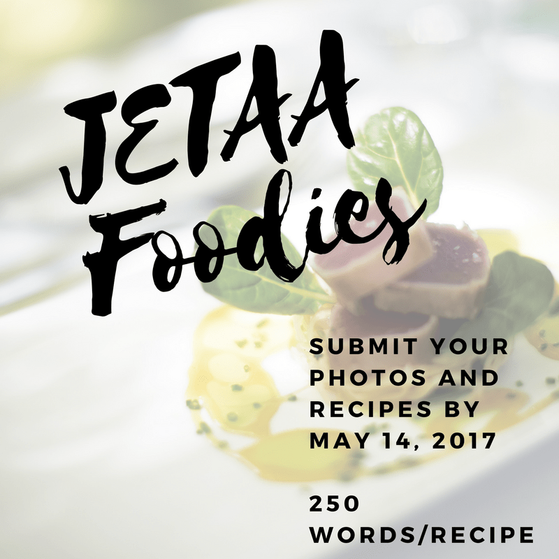 The May mid-month newsletter will be all about food, celebrating a hot hot summer bounty with memories and recipes from our time in JET. We would love your participation, and there are two ways to contribute. First, your recipes! Eligible submissions: A recipe for something you personally made during JET, limited to 250 words. It doesn't … Continue reading A Foodie Newsletter Just for JET Alumni